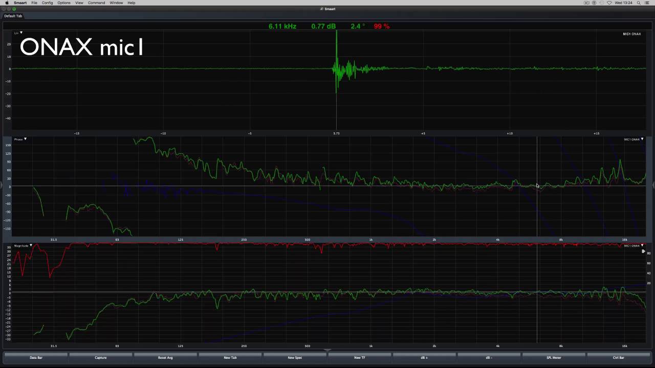 So here’s another screen capture. Upper part is the onax mic lower part is the ofax vertical mic. The ofax vertical is at the +/- -6db point of the horn.