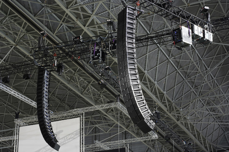 Op de afgelopen jongerendag werden de amps niet zo gevlogen, ze zaten volgens mij boven op de ophanging van de line-arrays. Bovendien, waren de line-arrays wel wat korter dan op de foto's weergegeven. (dit om enige verwarring van toekomstige reacties te voorkomen )